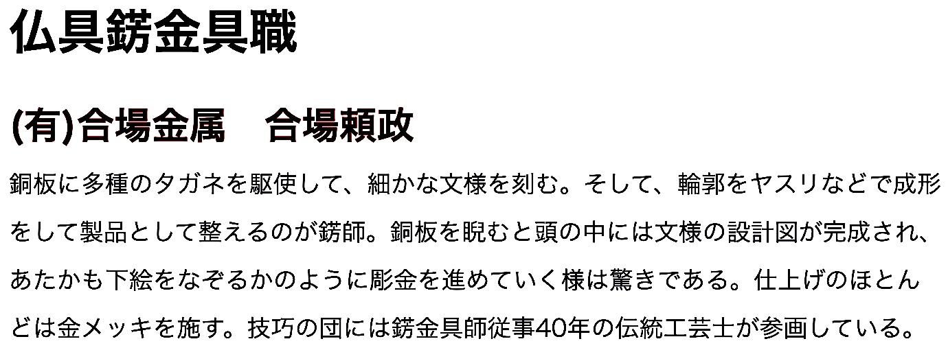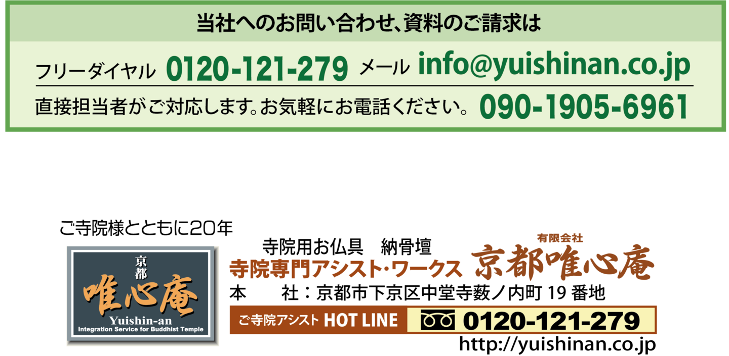 寺院用お仏具は、多くの分野の技術者が協力して作り上げていますが、その技術を体系的に把握して、初めて全く新しい分野でも活動ができる様に「京都唯心庵」がプロモートしております。